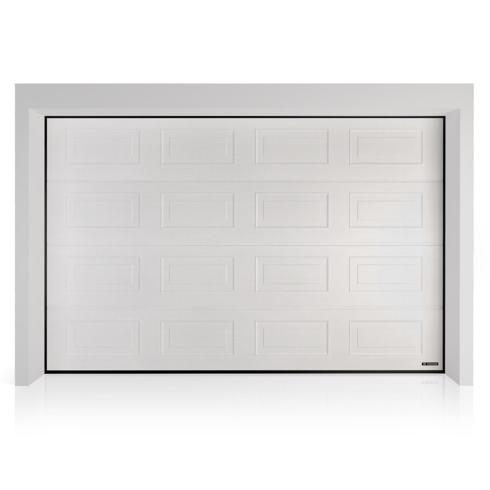 Brama Wiśniowski UniPro - panel z przetłoczeniami kasetonowymi, Woodgrain, kolor biały RAL 9016