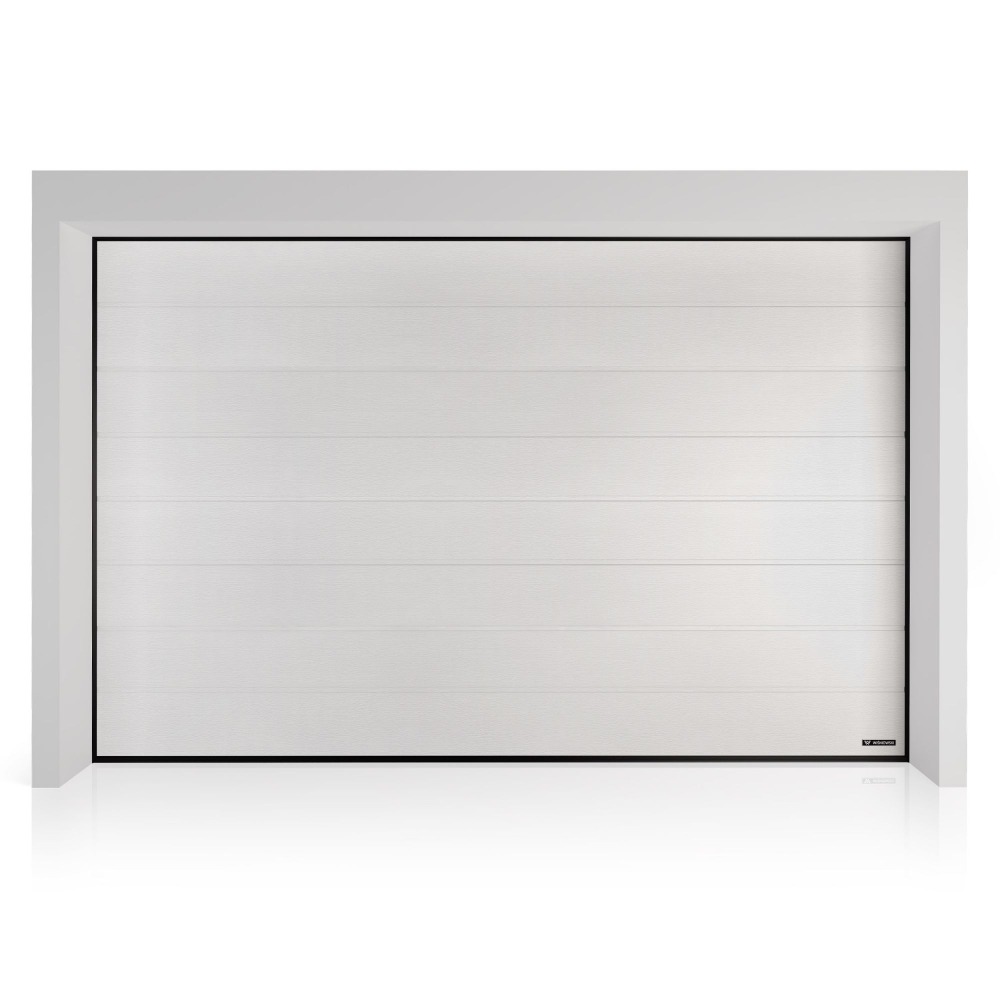 Brama Wiśniowski UniPro - panel z przetłoczeniami wysokimi, Woodgrain, kolor biały RAL 9016