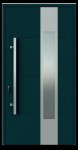 Drzwi aluminiowe zewnętrzne CREO jednoskrzydłowe z przegrodą termiczną: rama skrzydła i ościeżnicy wykonana jest z kształtowników aluminiowych czterokomorowych, z przegrodą termiczną o głębokości 77 [mm], co daje efekt skrzydeł zlicowanych z ościeżnicą od strony zewnętrznej i wewnętrznej(1). Sztywne profile aluminiowe pozwalają na wykonanie drzwi jednoskrzydłowych o dużych gabarytach Sd do 1400 [mm], Hd do 2500 [mm]. Możliwość wykonania drzwi z doświetlami bocznymi i naświetlem górnym - szczegóły na str.A25. Estetyczne wypełnienia obustronnie nakładkowe dostępne w wielu wzorach, kolorach z palety RAL (mat struktura), okleinach drewnopodobnych lub powłokach dekoracyjnych DECOR. Specjalne uszczelki zapewniają wysoką szczelność na wodę i powietrze, co ma wpływ na jeszcze lepszy komfort użytkowania i oszczędność kosztów. Konstrukcje drzwi pozwalają uzyskać bardzo dobre parametry termiczne. Współczynnik U drzwi od 0,8 [W/m2K] dla drzwi o wymiarach referencyjnych 1400 x 2500 [mm].