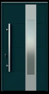 Drzwi aluminiowe CREO można wyposażyć w uchwyt ze stali nierdzewnej od strony zewnętrznej. Do wyboru są uchwyty montowane na skraju skrzydła lub