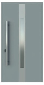 Wypełnienie: panel obustronnie nakładkowy z obustronną aplikacją ze stali nierdzewnej umieszczoną centralnie na skrzydle i przeszkleniem szybą trzykomorową obustronnie bezpieczną 33.1 (2B2) mat bezpieczna // 33.1 (2B2) mat bezpieczna U=0,6.