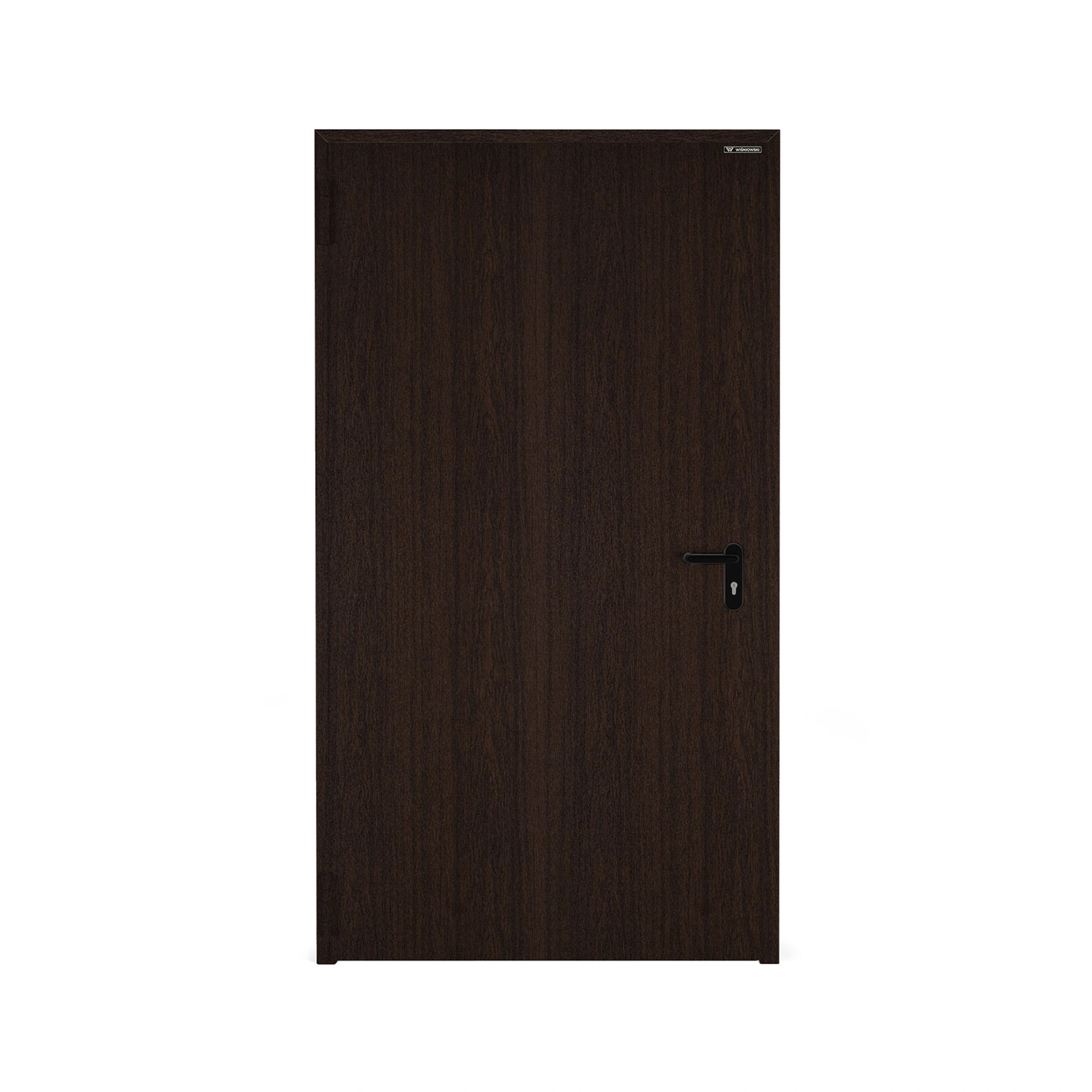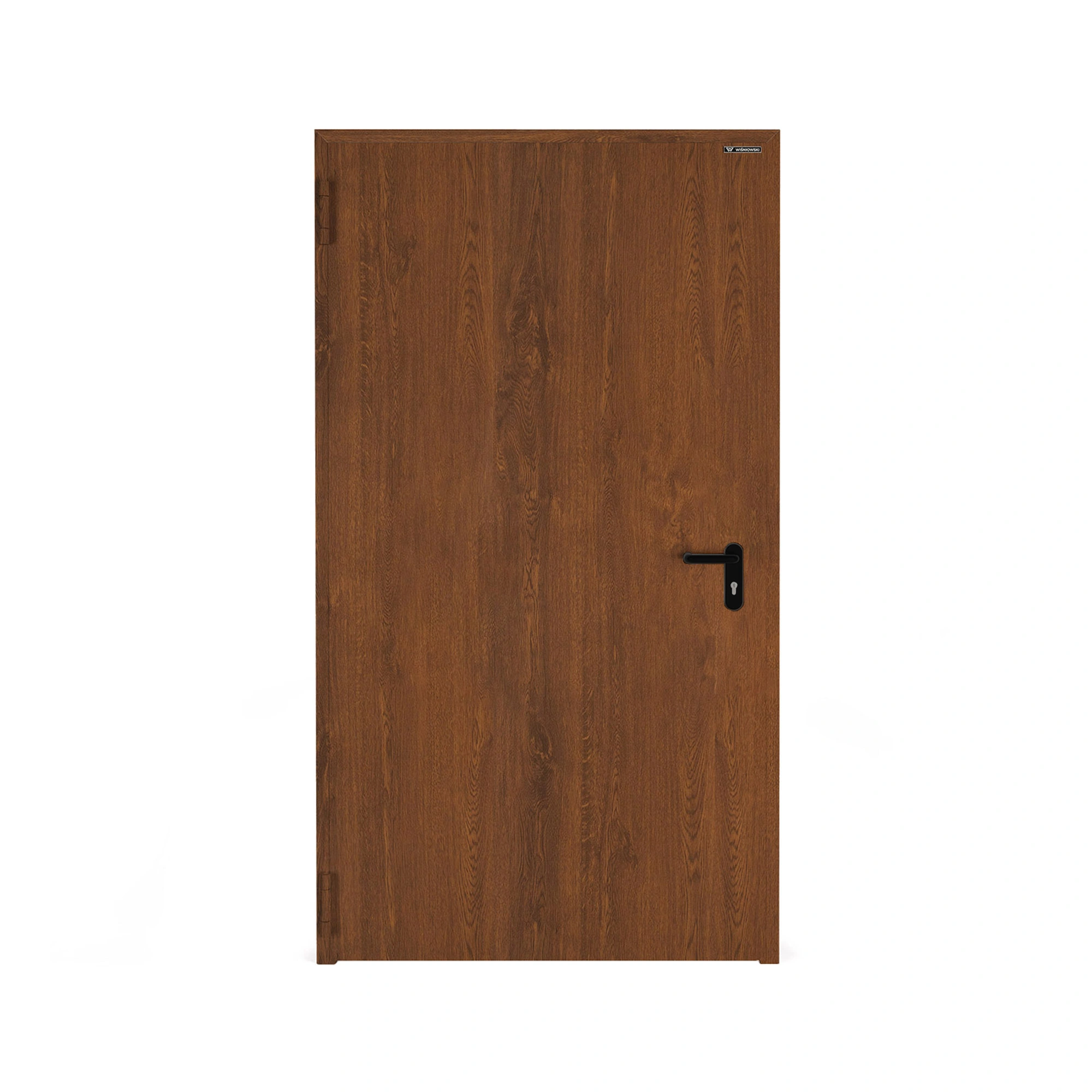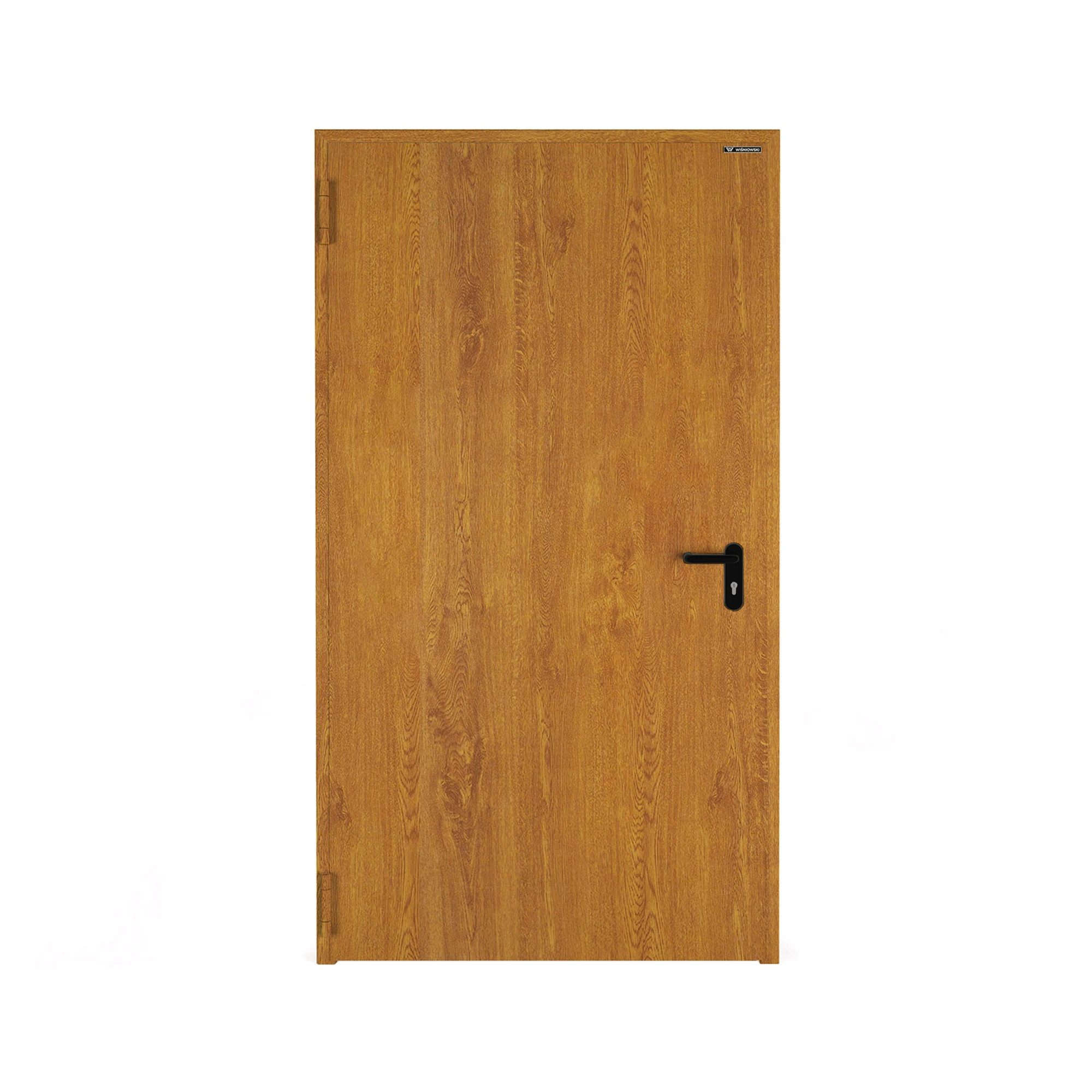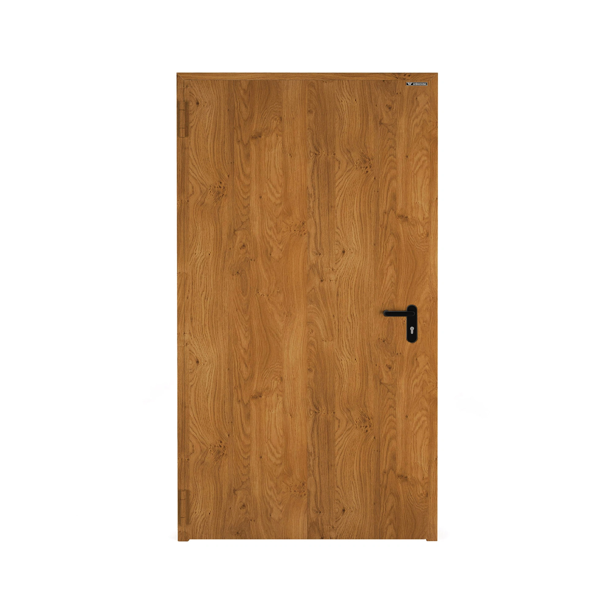 • Konstrukcja: ościeżnica narożna z uszczelką przylgową, skrzydło z blachy ocynkowanej, pokrytej okleiną drewnopodobną
