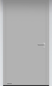 Charakterystyczną cechą konstrukcji jest płyta drzwiowa bez widocznego profilu skrzydła, co oznacza, że z zewnątrz i od wewnątrz drzwi mają jednolitą, gładką powierzchnię. Rozwiązanie to poprawia estetykę drzwi oraz umożliwia lepsze dopasowanie do nowoczesnych elewacji i aranżacji wnętrz.