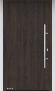 Drzwi zewnętrzne Hörmann Thermo 65 — wzór 015 Decograin, kolor Night Oak