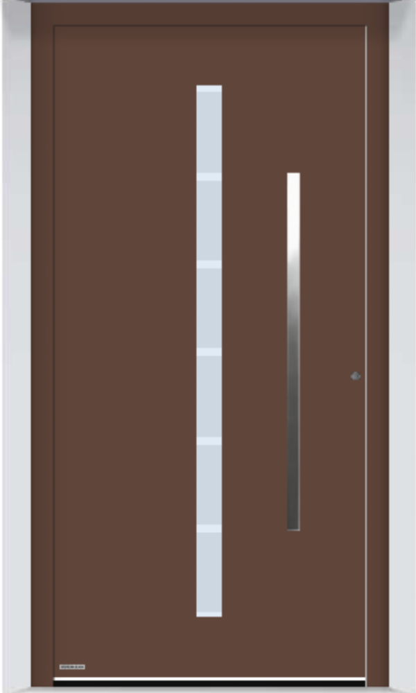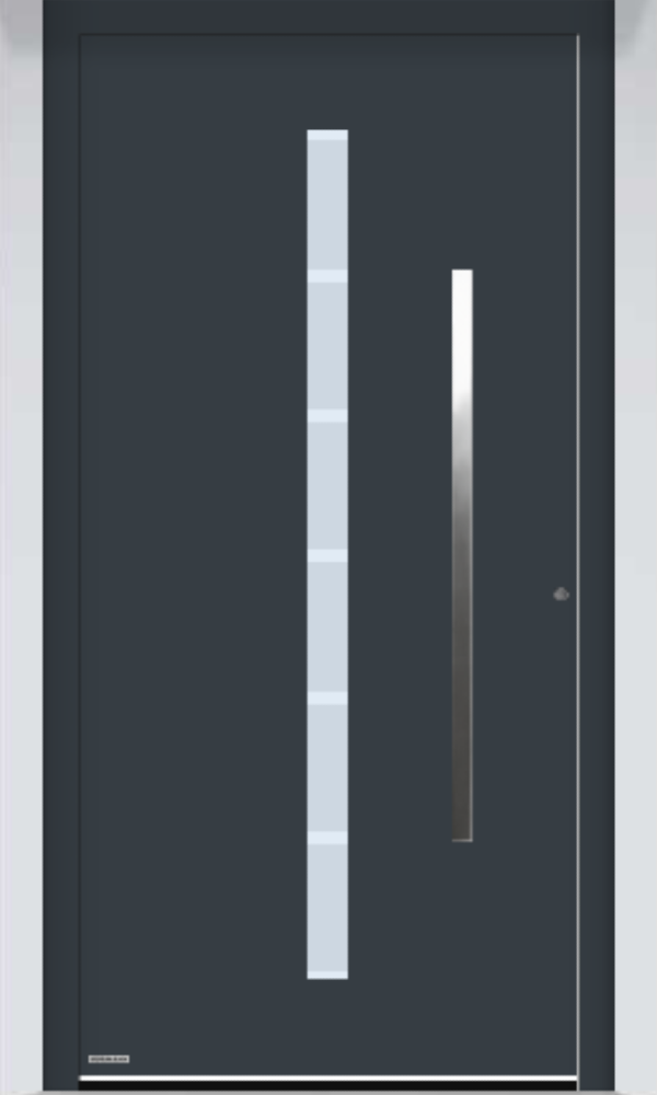 Seria Thermosafe charakteryzuje się nowoczesnym układem pionowych przeszkleń, które nadają drzwiom lekkości i elegancji. Wąskie, symetryczne pasy szkła doskonale komponują się z minimalistycznymi elewacjami i nowoczesną architekturą domów jednorodzinnych