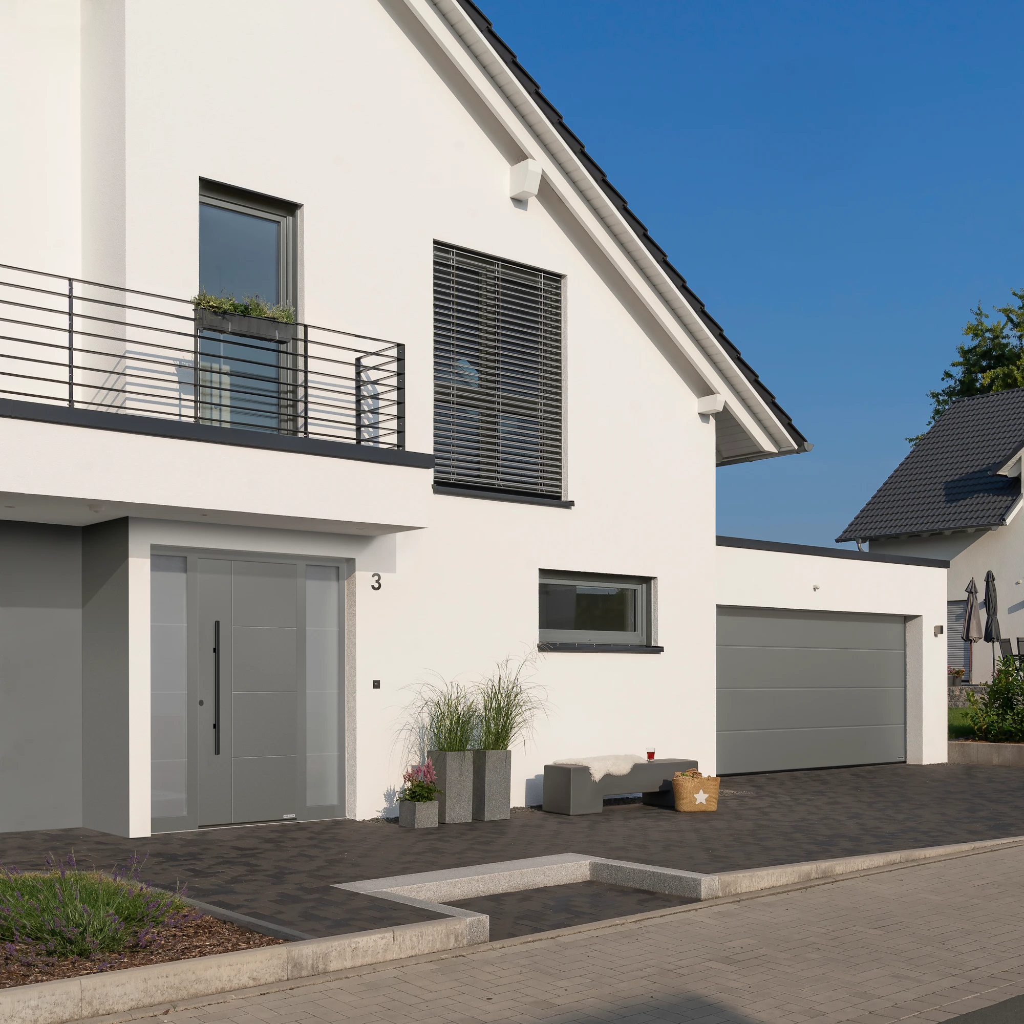 Drzwi Hörmann serii ThermoSafe doskonale sprawdzi się w nowoczesnych domach jednorodzinnych, gdzie drzwi wejściowe pełnią nie tylko funkcję praktyczną, ale także stanowią ważny element estetyczny całej elewacji.