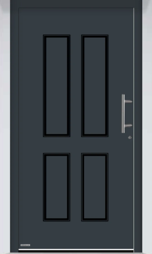 Pakiet ten wprowadza do konstrukcji drzwi modne, matowe elementy w kolorze czarnym, które podkreślają minimalistyczny styl wejścia do domu.