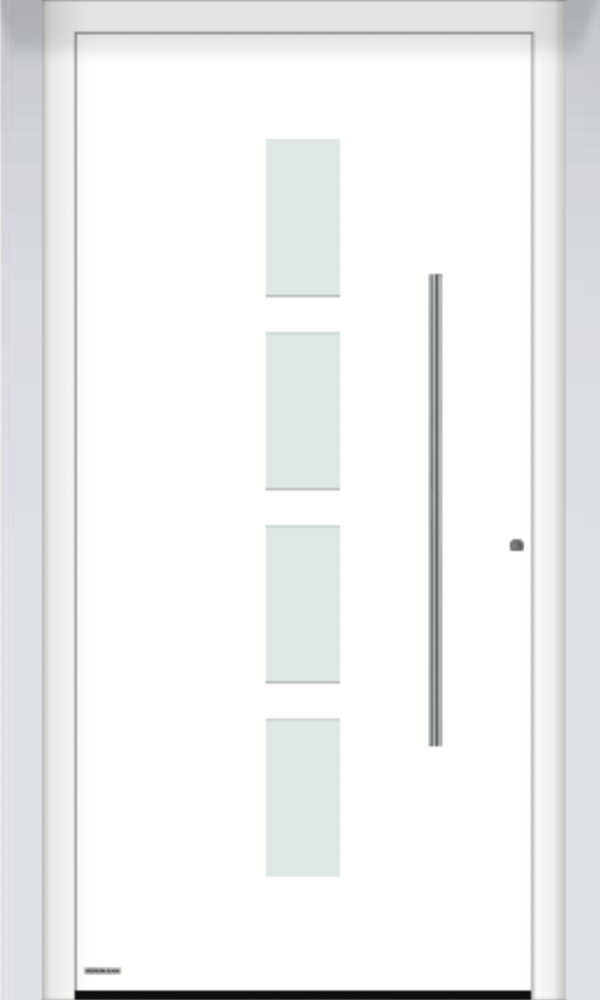- aluminiowa płyta drzwiowa z przegrodą termiczną i wypełnieniem z utwardzonej pianki PU, grubości 73mm, malowana proszkowo, od wewnątrz w matowym białym kolorze RAL9016