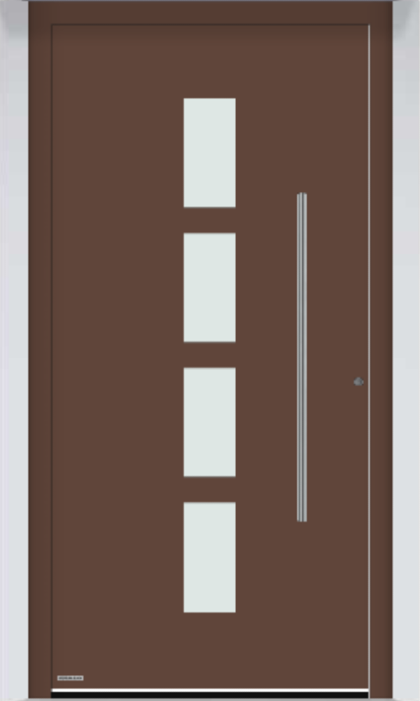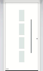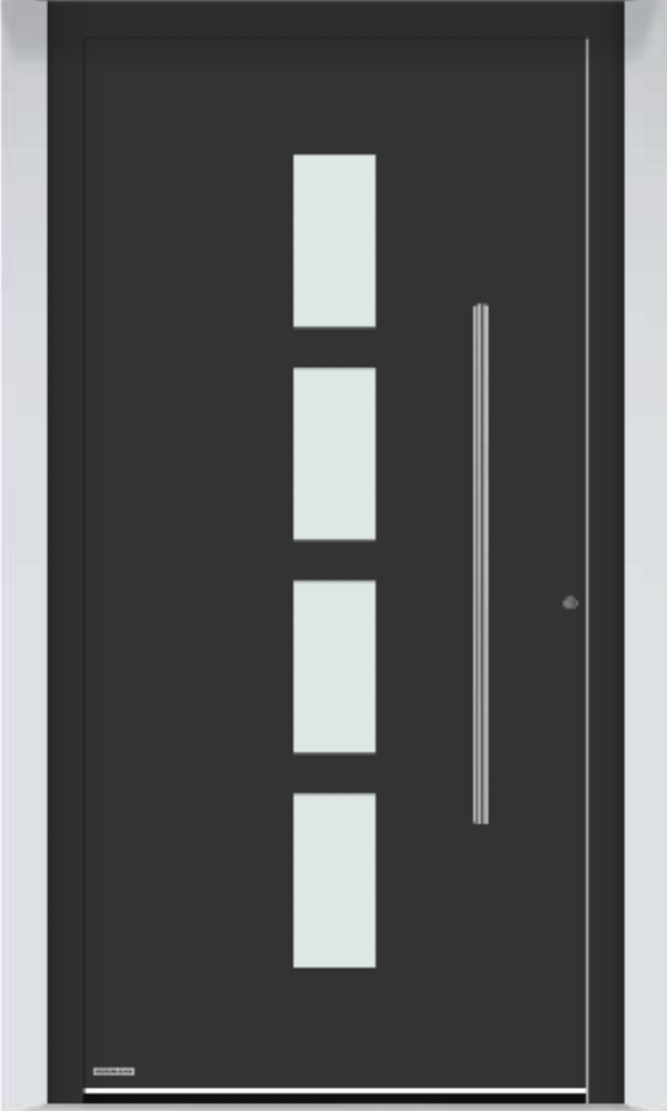 Seria Thermosafe charakteryzuje się nowoczesnym układem pionowych przeszkleń, które nadają drzwiom lekkości i elegancji. Wąskie, symetryczne pasy szkła doskonale komponują się z minimalistycznymi elewacjami i nowoczesną architekturą domów jednorodzinnych