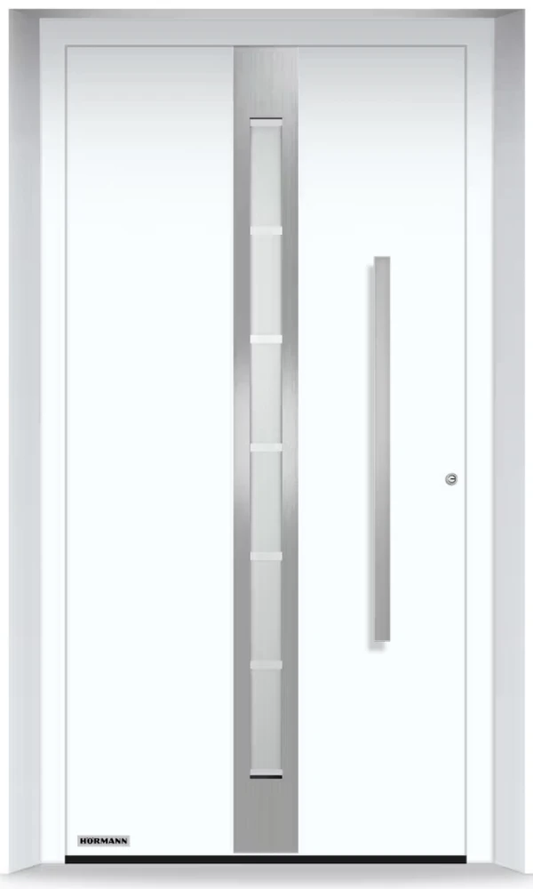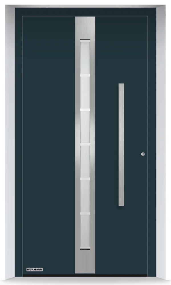 Drzwi wejściowe serii ThermoSafe od Hörmann to nowoczesne, aluminiowe drzwi zewnętrzne klasy premium, zaprojektowane z myślą o budynkach energooszczędnych oraz nowoczesnej architekturze. Model ten wyróżnia się minimalistycznym wzornictwem, dużymi przeszkleniami dekoracyjnymi oraz bardzo wysokimi parametrami izolacyjności cieplnej i bezpieczeństwa.