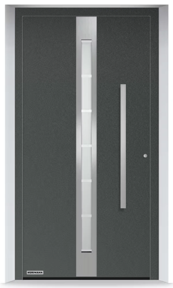 Drzwi Hörmann serii ThermoSafe to nowoczesne, aluminiowe drzwi wejściowe klasy premium, które łączą elegancki design z bardzo wysokimi parametrami technicznymi. Dzięki grubemu skrzydłu aluminiowemu, doskonałej izolacyjności cieplnej oraz możliwości zastosowania zabezpieczeń antywłamaniowych RC3 drzwi te stanowią idealne rozwiązanie dla wymagających inwestorów.