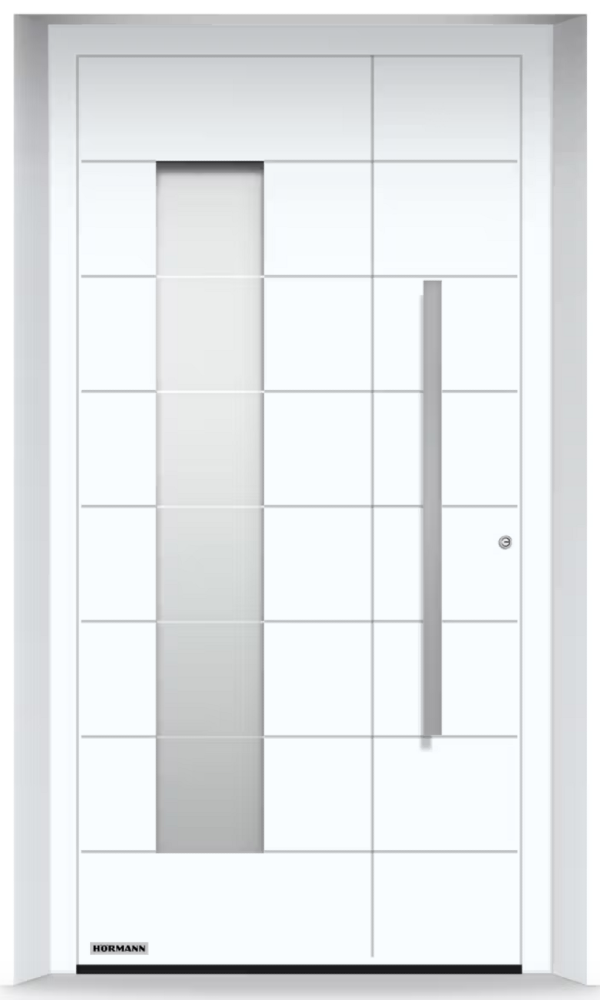 Drzwi wejściowe serii ThermoSafe od Hörmann to nowoczesne, aluminiowe drzwi zewnętrzne klasy premium, zaprojektowane z myślą o budynkach energooszczędnych oraz nowoczesnej architekturze. Model ten wyróżnia się minimalistycznym wzornictwem, dużymi przeszkleniami dekoracyjnymi oraz bardzo wysokimi parametrami izolacyjności cieplnej i bezpieczeństwa.
