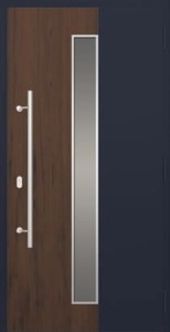 Drzwi zewnętrzne NOVA jednoskrzydłowe składają się z ościeżnicy wykonanej z kształtowników aluminiowych trzykomorowych, z przegrodą termiczną o głębokości 77 [mm] oraz skrzydła z grubą przylgą o grubości 78 [mm] wykonanego z blachy stalowej o grubości 0,75 [mm] i wypełnienia pianką PU. Możliwość wykonania drzwi z doświetlami bocznymi i naświetlem górnym. Estetyczne wypełnienia dostępne w wielu wzorach, kolorach z palety RAL (mat struktura), z blachy powlekanej powłoką poliestrową lub powłokach dekoracyjnych DECOR.