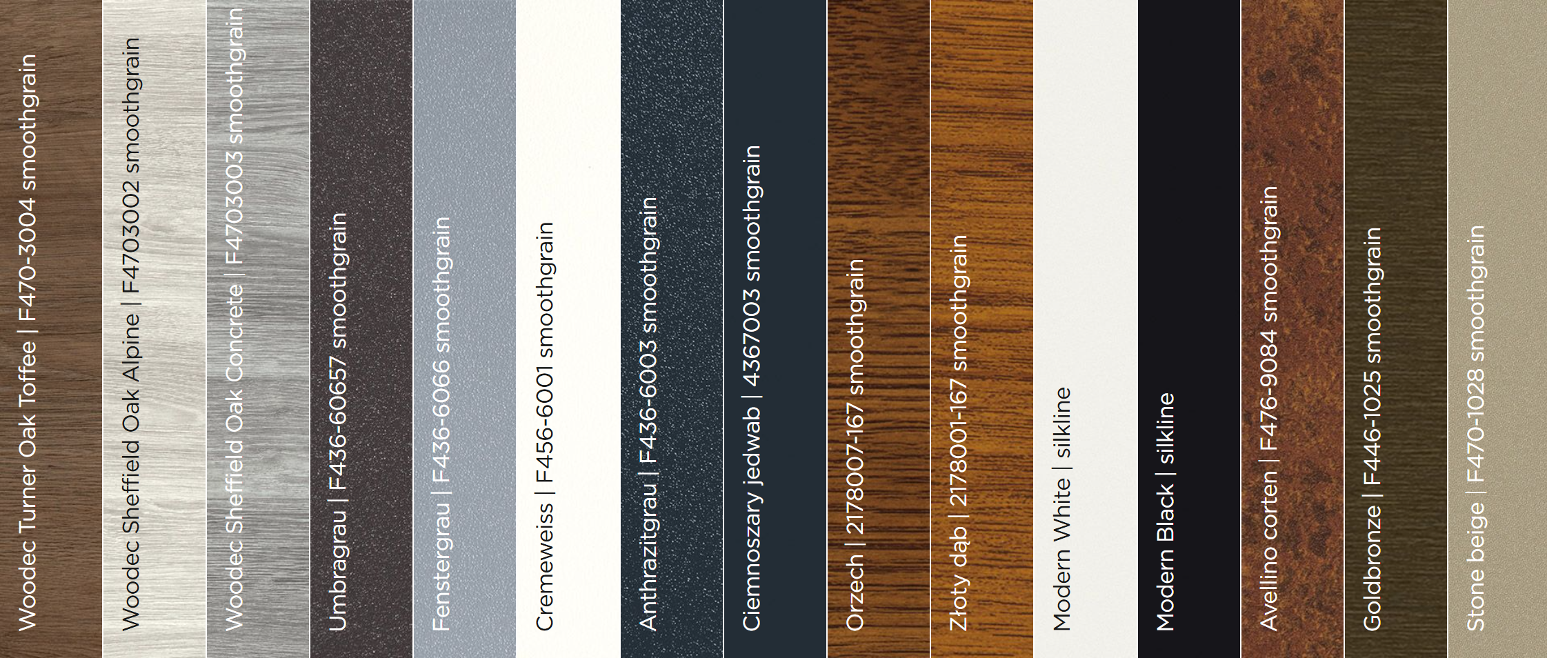 szeroka gama kolorów i oklein