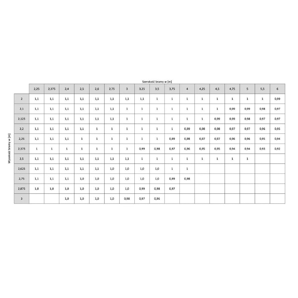 Brama oferuje również dobrą izolacyjność akustyczną na poziomie Rw = 24 dB. Dodatkowo producent podaje klasę przepuszczalności powietrza 5, co potwierdza wysoki poziom szczelności całej konstrukcji. W praktyce oznacza to większy komfort użytkowania oraz lepszą ochronę wnętrza garażu przed chłodem, przeciągami i hałasem z zewnątrz.