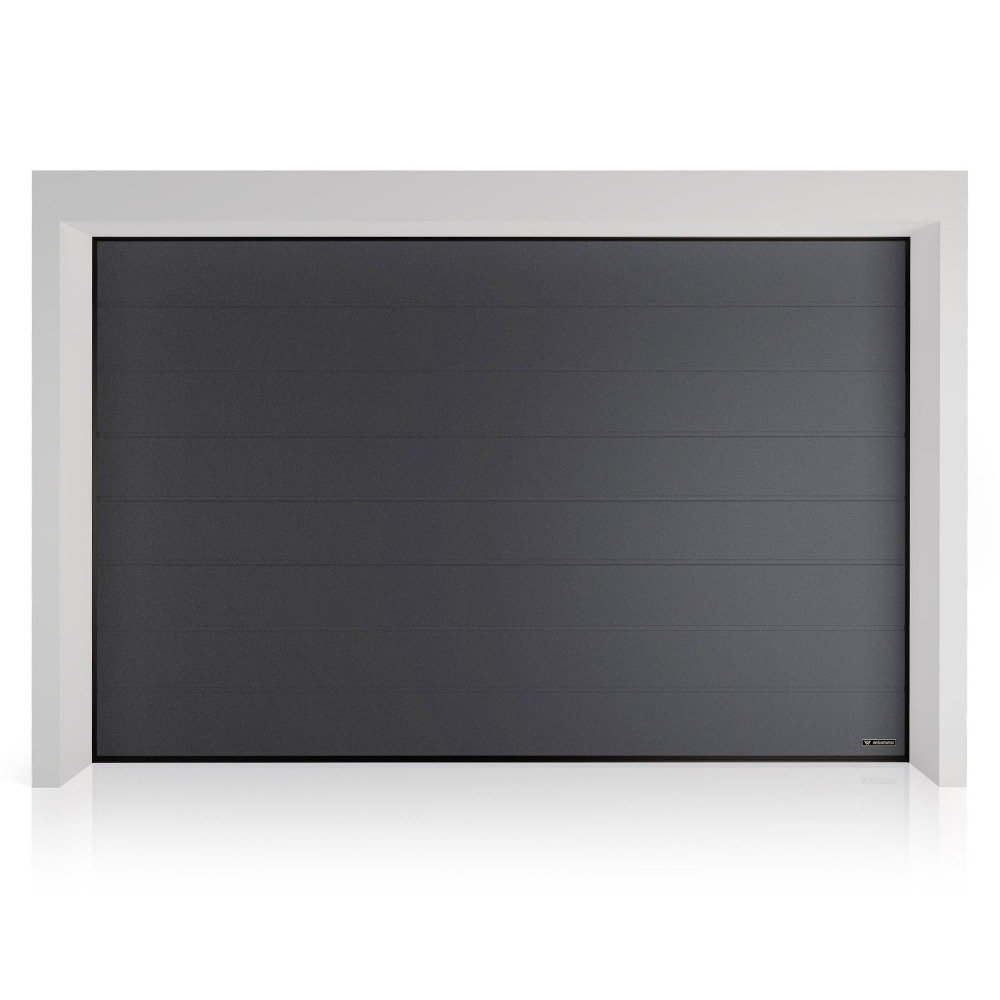 Brama segmentowa UniTherm – panel z przetłoczeniami wysokimi, która idealnie wpisuje się w nowoczesne potrzeby garażowe — zarówno w budynkach w bryle domu, jak i w garażach wolnostojących.