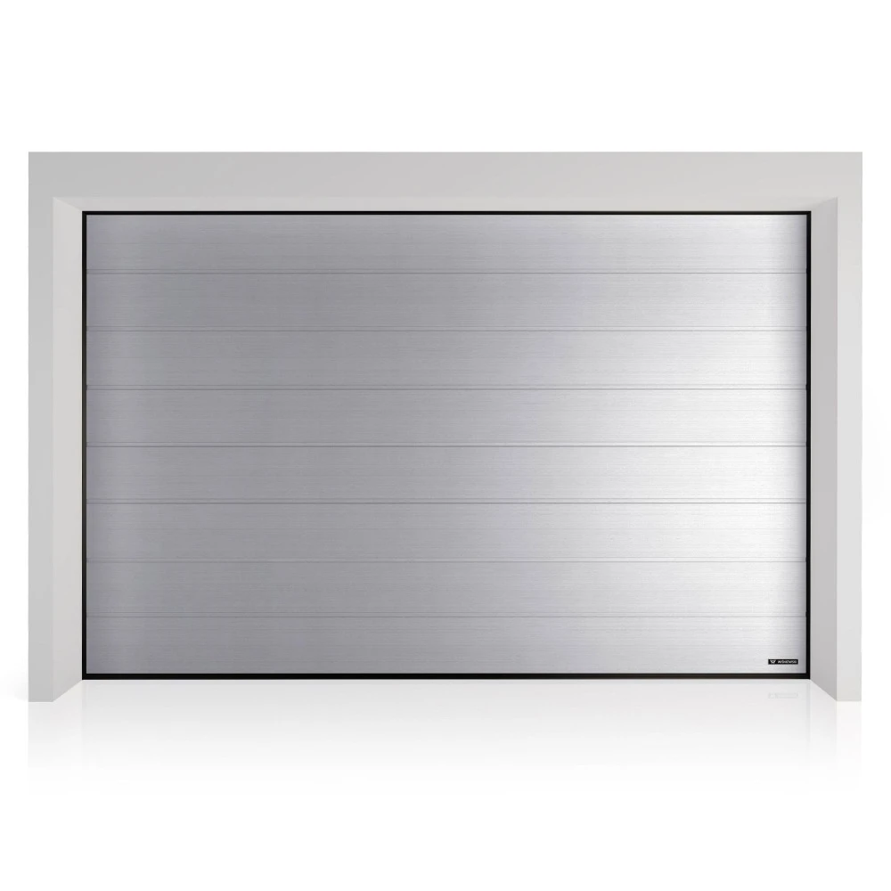 Brama segmentowa UniTherm – panel z przetłoczeniami wysokimi, która idealnie wpisuje się w nowoczesne potrzeby garażowe — zarówno w budynkach w bryle domu, jak i w garażach wolnostojących.