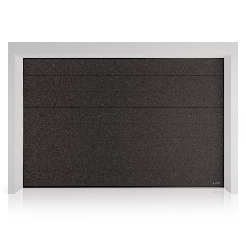 Brama segmentowa UniTherm – panel z przetłoczeniami wysokimi, która idealnie wpisuje się w nowoczesne potrzeby garażowe — zarówno w budynkach w bryle domu, jak i w garażach wolnostojących.